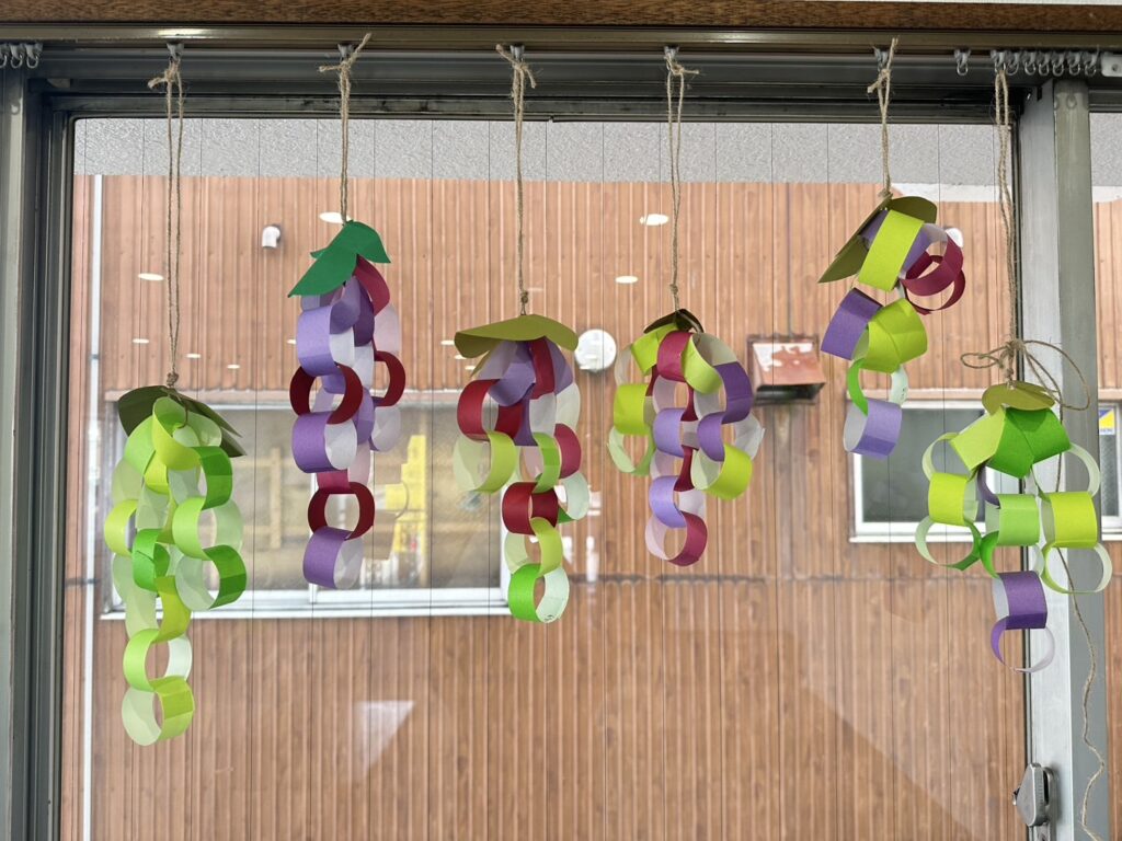 お月見のつるし飾り・ぶどうの壁飾りと秋モードになっています😊